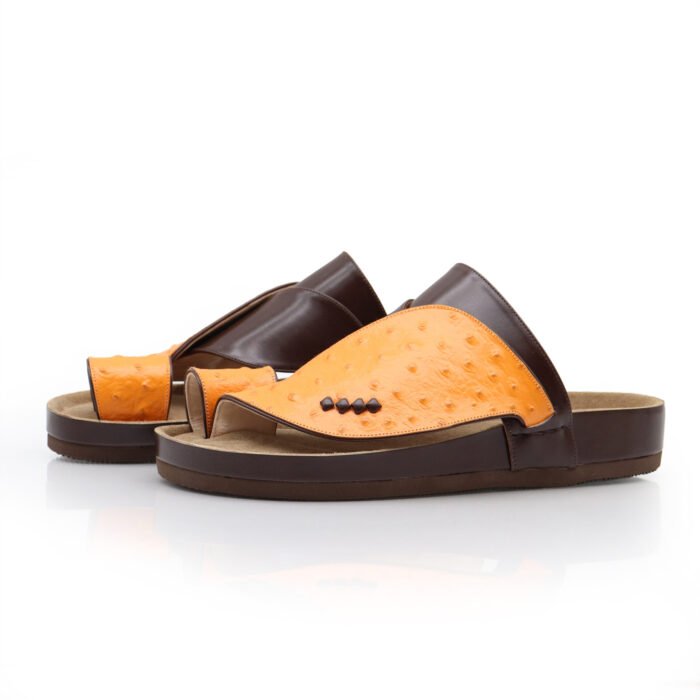 حذاء جلد طبيعي ايطالي بطبعة النعام