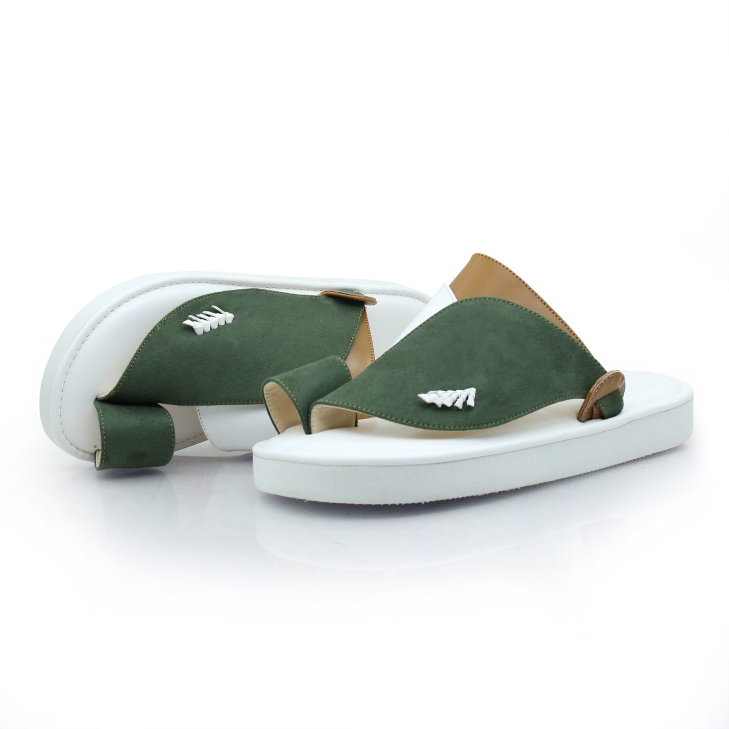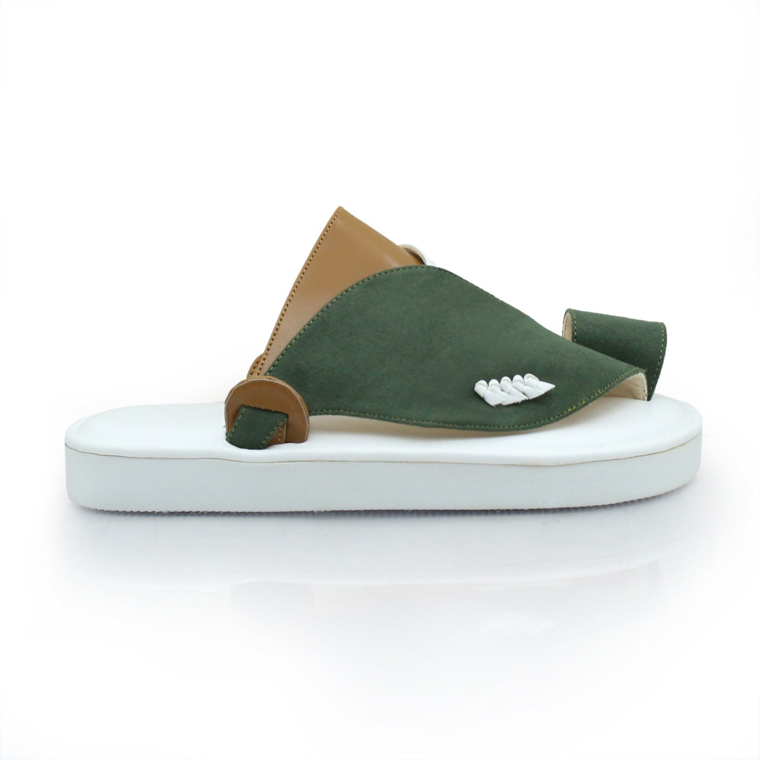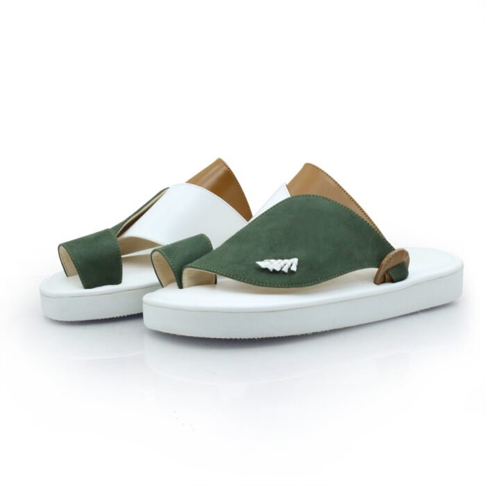 حذاء شرقي مخمل لون اخضر غامق مع ابيض
